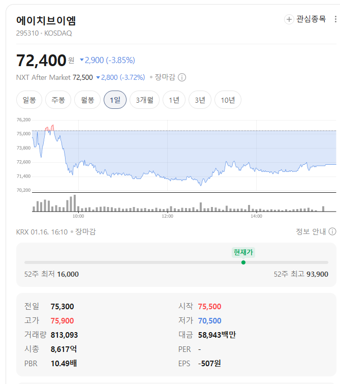 - 장중 고가: 75,900원 / 저가: 70,500원