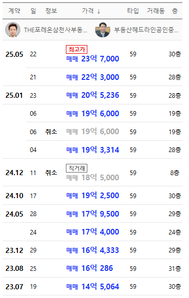 | 59A | 59.99㎡ | 105동 2203호 | 105,190 | 갭투 인기 타입 |